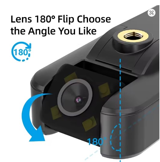 ✔ 180° Flip Lens + 115° Wide Angle – Adjustable viewing angle for flexible recording perspectives.