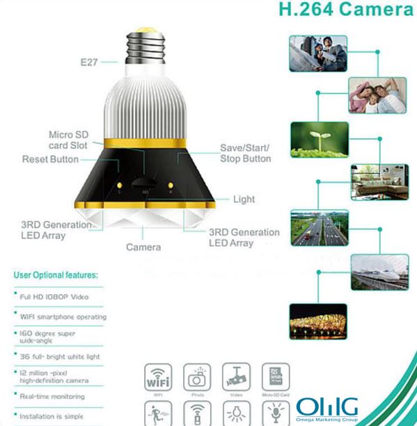 1080P WIFI IP Bulb Camera DVR, 940nm