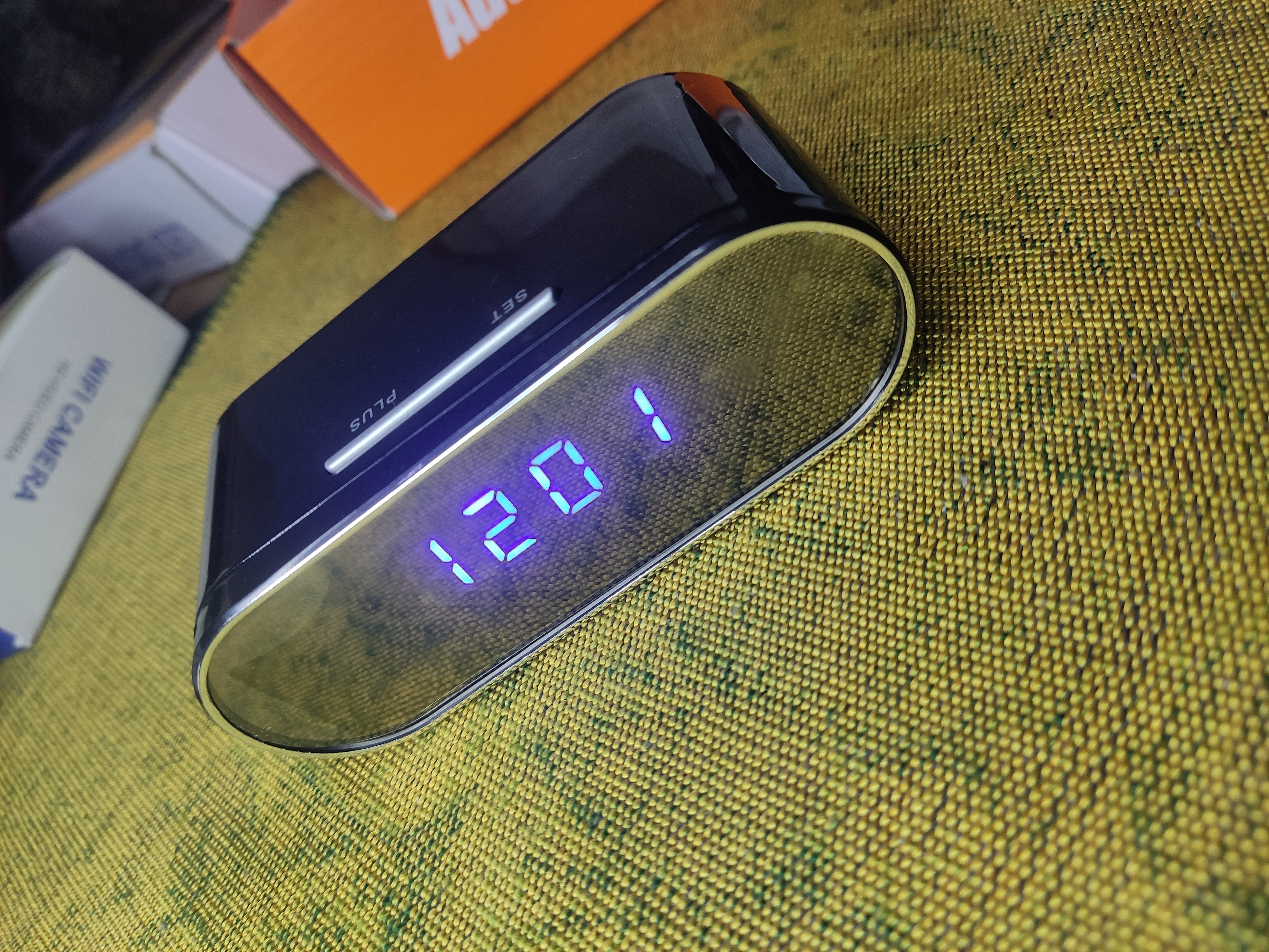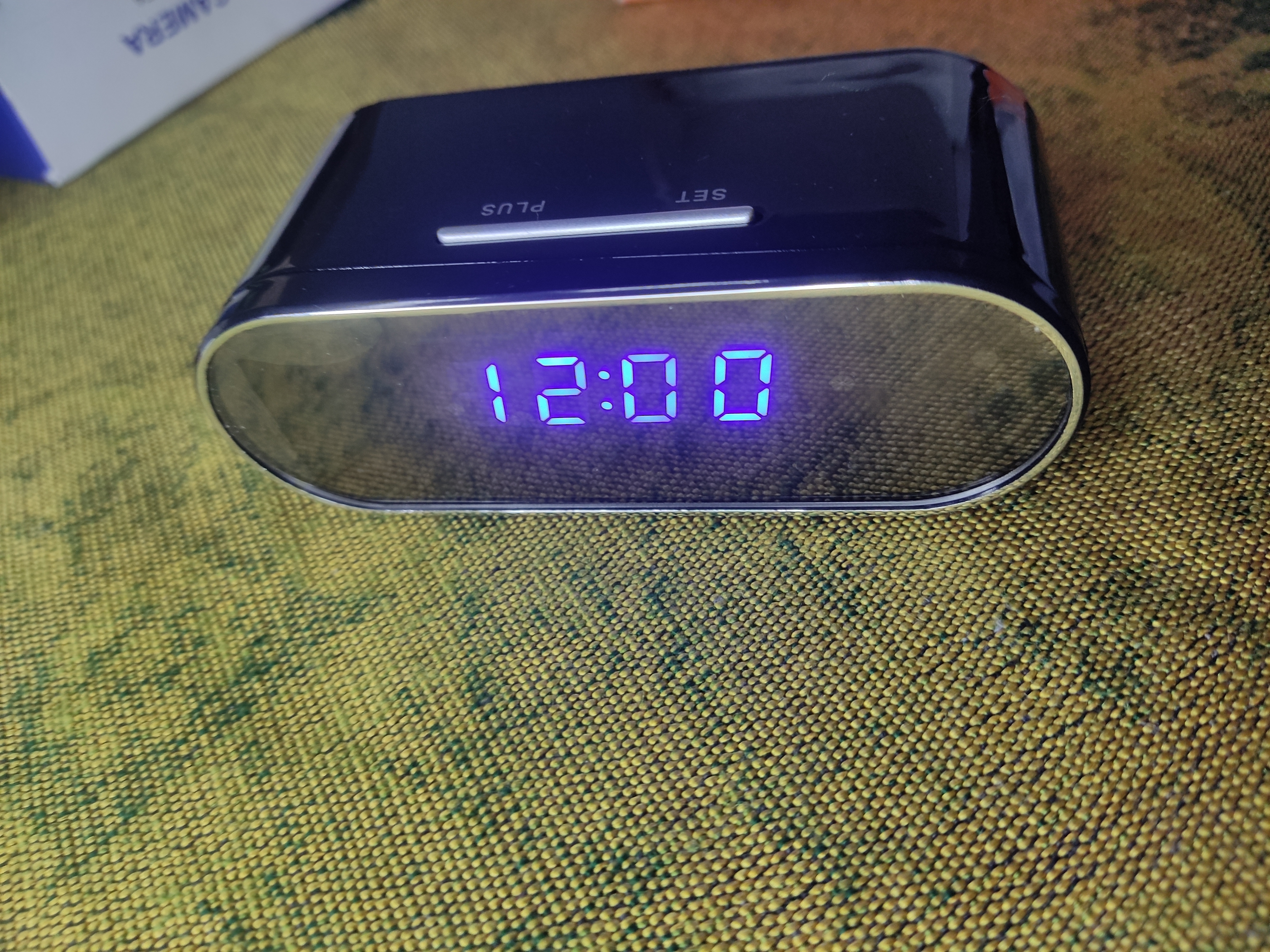 একটা একটি স্প্যাই ক্যামেরা যা ডিজিটাল টেবিল ঘড়ির মধ্যে লুকানো আছে।